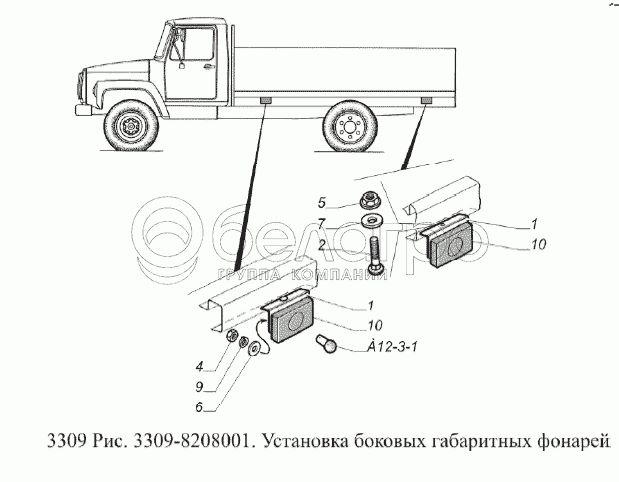 Каталог запасных частей к технике: ГАЗ-3309 (Евро 2). Установка боковых габаритных огней