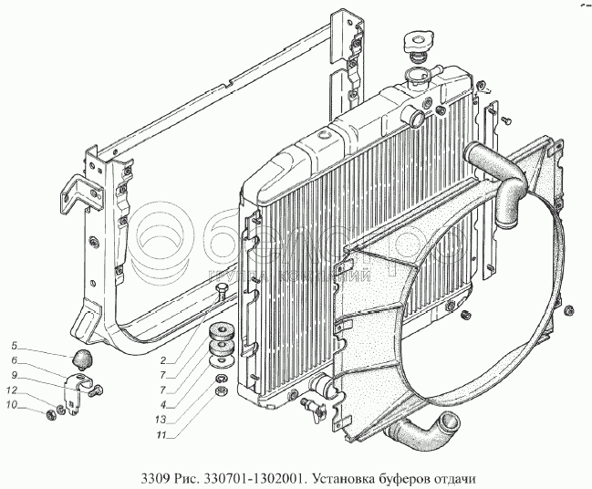 Каталог запасных частей к технике: ГАЗ-3309 (Евро 2). Установка буферов отдачи