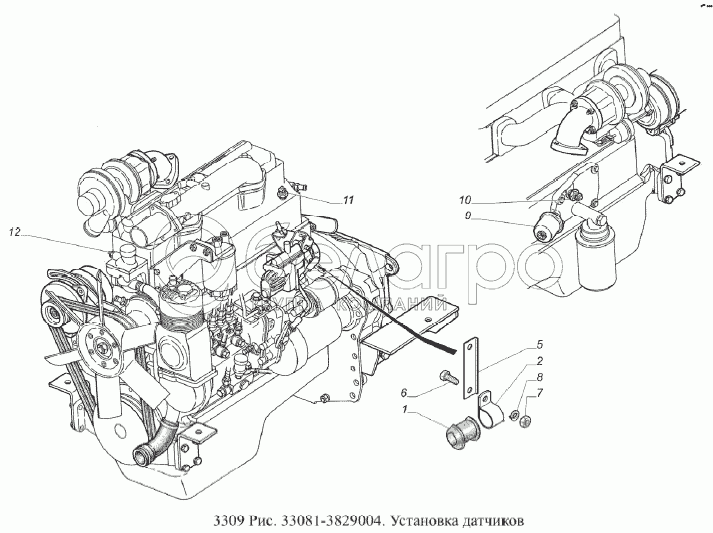 Каталог запасных частей к технике: ГАЗ-3309 (Евро 2). Установка датчиков