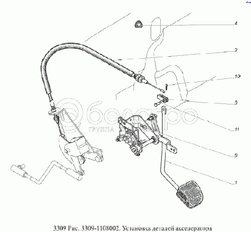Каталог запасных частей к технике: ГАЗ-3309 (Евро 2). Установка деталей акселератора