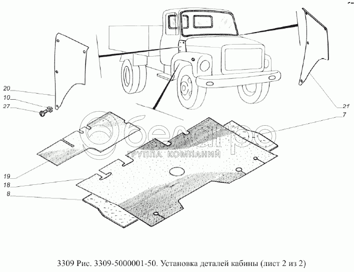 Каталог запасных частей к технике: ГАЗ-3309 (Евро 2). Установка деталей кабины