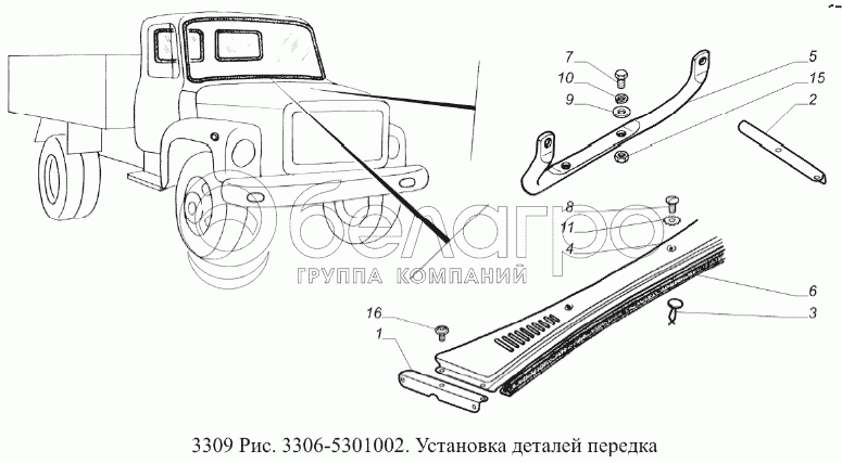 Каталог запасных частей к технике: ГАЗ-3309 (Евро 2). Установка деталей передка