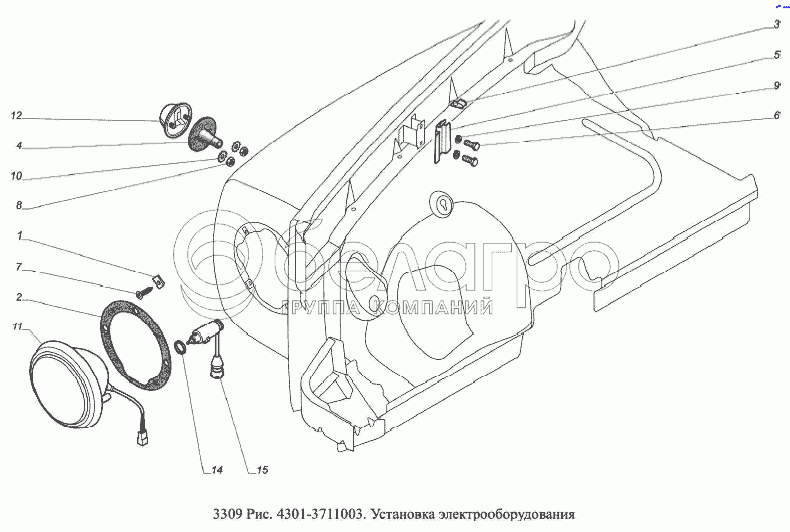Каталог запасных частей к технике: ГАЗ-3309 (Евро 2). Установка электрооборудования