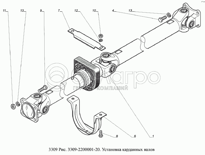 Каталог запасных частей к технике: ГАЗ-3309 (Евро 2). Установка карданных валов