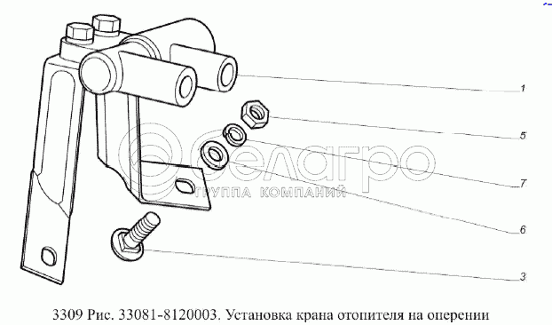 Каталог запасных частей к технике: ГАЗ-3309 (Евро 2). Установка крана отопителя на оперении