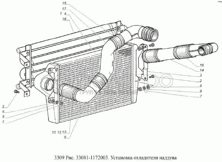 Каталог запасных частей к технике: ГАЗ-3309 (Евро 2). Установка охладителя воздуха