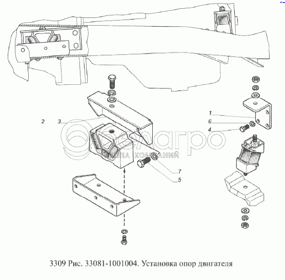 Каталог запасных частей к технике: ГАЗ-3309 (Евро 2). Установка опор двигателя