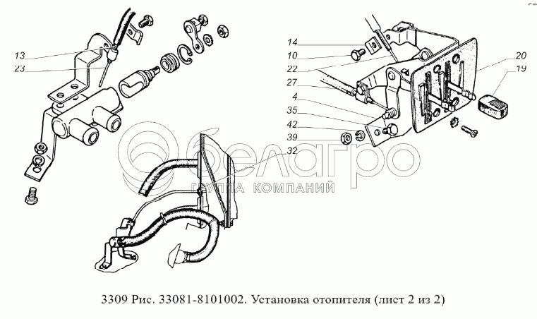 Каталог запасных частей к технике: ГАЗ-3309 (Евро 2). Установка отопителя