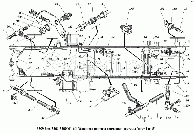 Трубка от соединительной муфты к нижней секции тормозного крана