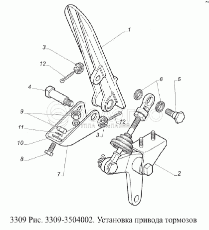 Каталог запасных частей к технике: ГАЗ-3309 (Евро 2). Установка привода тормозов