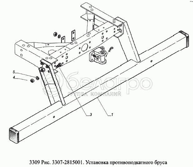 Каталог запасных частей к технике: ГАЗ-3309 (Евро 2). Установка противоподкатного бруса