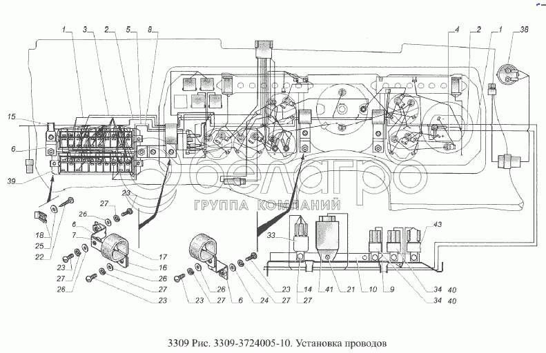 Каталог запасных частей к технике: ГАЗ-3309 (Евро 2). Установка проводов