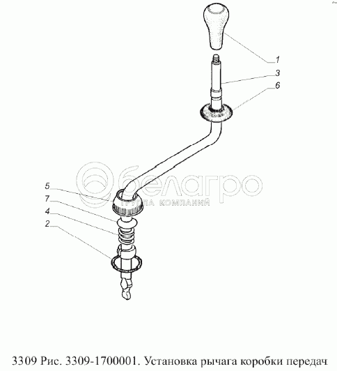 Каталог запасных частей к технике: ГАЗ-3309 (Евро 2). Установка рычага коробки передач