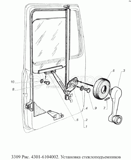 Каталог запасных частей к технике: ГАЗ-3309 (Евро 2). Установка стеклоподъемников