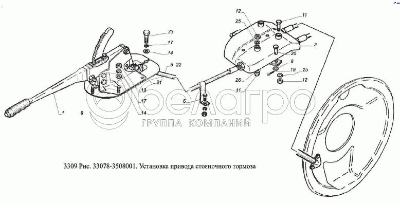 Каталог запасных частей к технике: ГАЗ-3309 (Евро 2). Установка стояночного тормоза