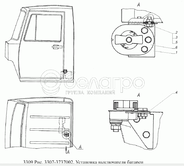 Каталог запасных частей к технике: ГАЗ-3309 (Евро 2). Установка выключателя батареи