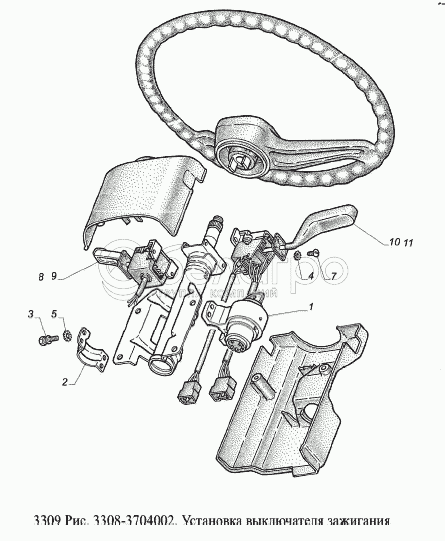 Каталог запасных частей к технике: ГАЗ-3309 (Евро 2). Установка выключателя зажигания