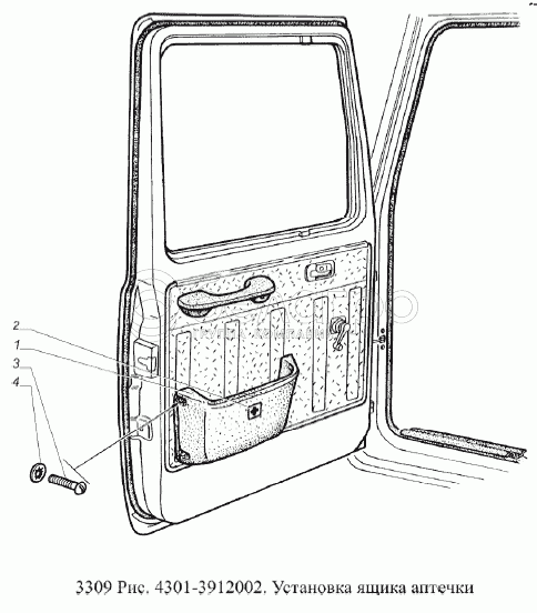 Каталог запасных частей к технике: ГАЗ-3309 (Евро 2). Установка ящика аптечки