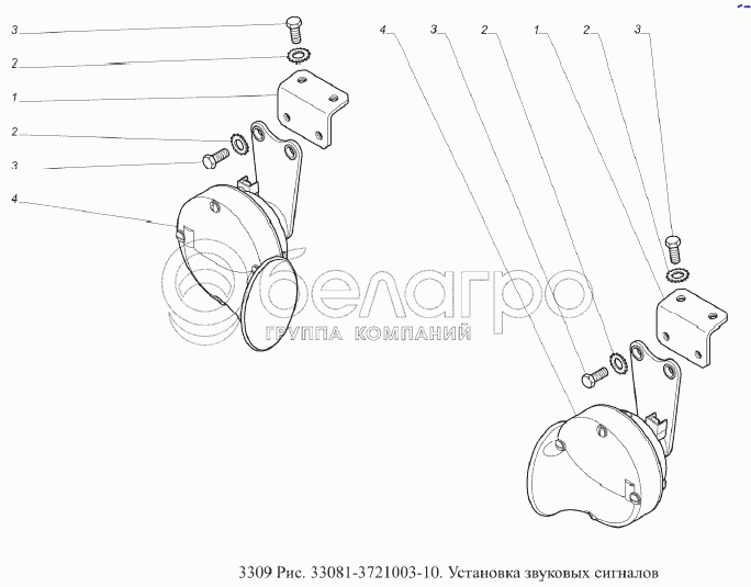 Каталог запасных частей к технике: ГАЗ-3309 (Евро 2). Установка звуковых сигналов