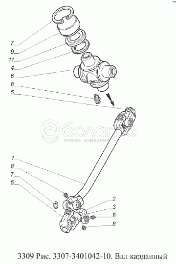Каталог запасных частей к технике: ГАЗ-3309 (Евро 2). Вал карданный
