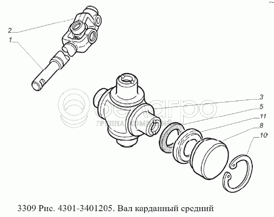 Каталог запасных частей к технике: ГАЗ-3309 (Евро 2). Вал карданный средний
