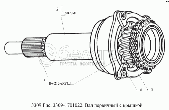Каталог запасных частей к технике: ГАЗ-3309 (Евро 2). Вал первичный с крышкой