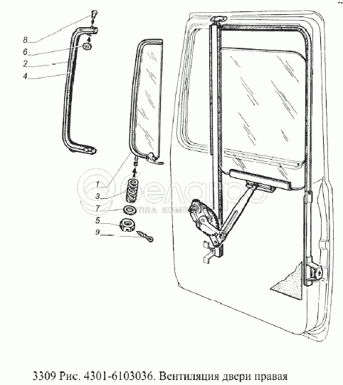 Каталог запасных частей к технике: ГАЗ-3309 (Евро 2). Вентиляция двери правая