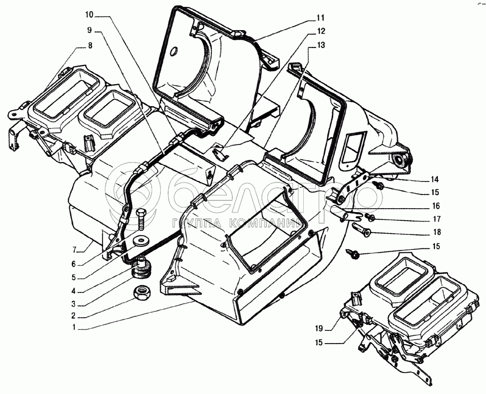Каталог запасных частей к технике: ГАЗ-33104 Валдай. Детали корпуса отопителя
