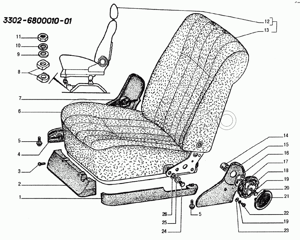 Каталог запасных частей к технике: ГАЗ-33104 Валдай. Сиденье водителя
