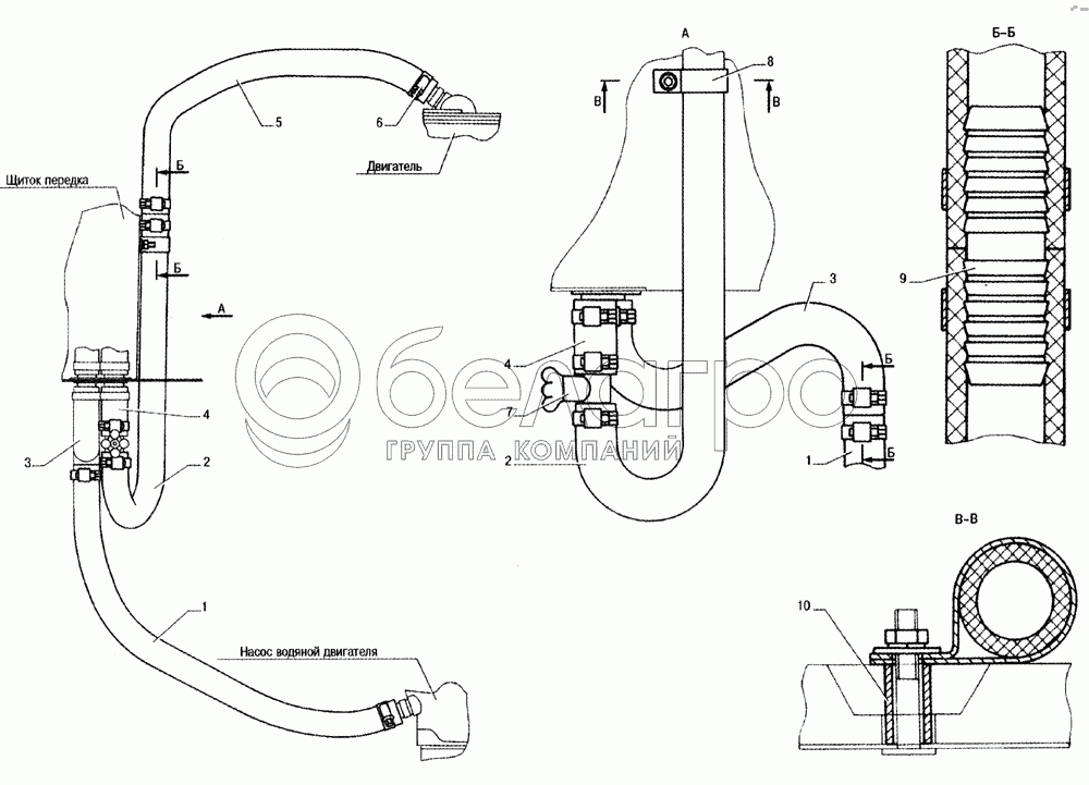 Каталог запасных частей к технике: ГАЗ-33104 Валдай. Трубопроводы отопителя