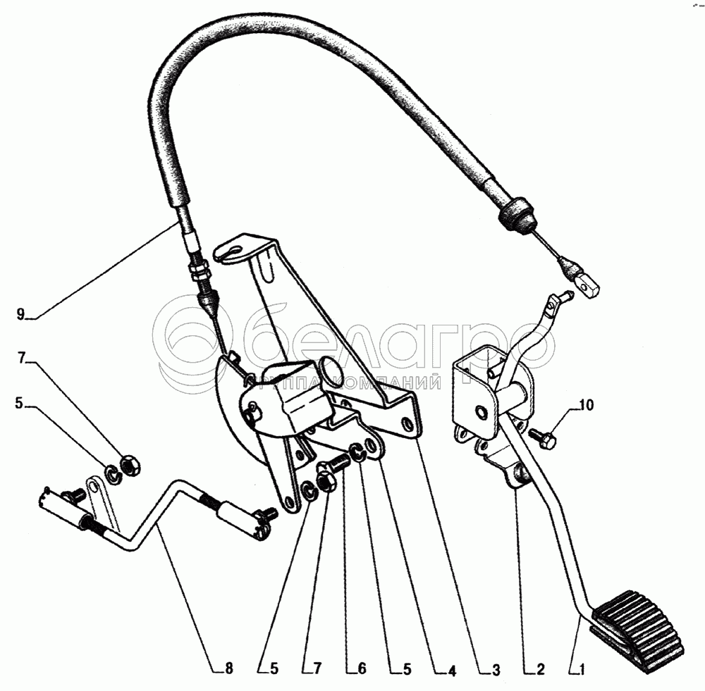 Каталог запасных частей к технике: ГАЗ-33104 Валдай. Установка деталей акселератора