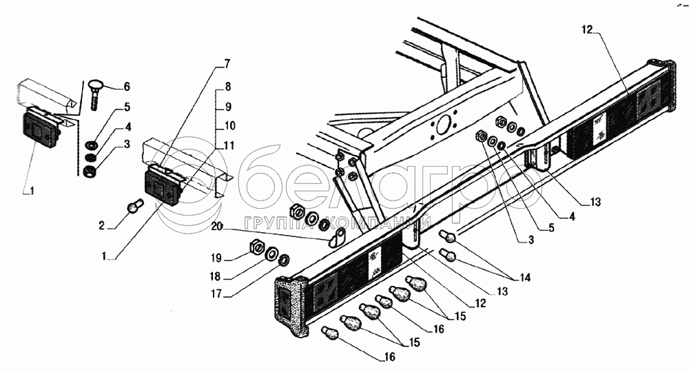 Каталог запасных частей к технике: ГАЗ-33104 Валдай. Задние фонари, боковые габаритные фонари