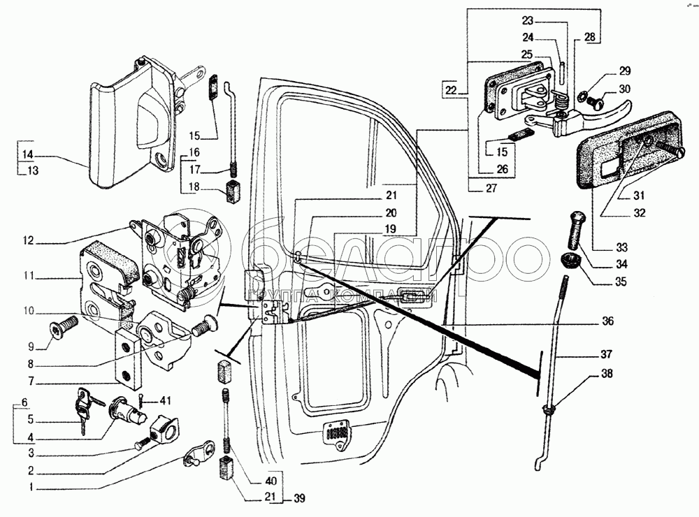Каталог запасных частей к технике: ГАЗ-33104 Валдай. Замок и ручки дверей