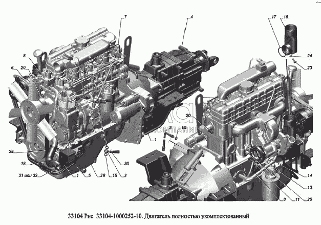 Каталог запасных частей к технике: ГАЗ-33104 Валдай Евро 3. Двигатель полностью укомплектованный