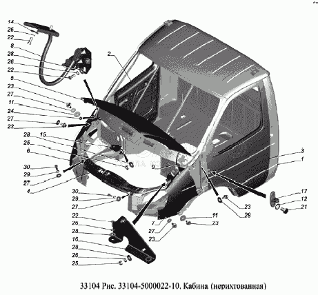 Каталог запасных частей к технике: ГАЗ-33104 Валдай Евро 3. Кабина (нерихтованная)