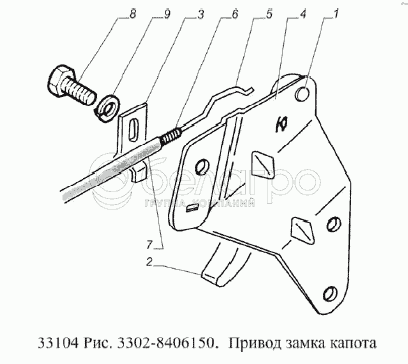 Каталог запасных частей к технике: ГАЗ-33104 Валдай Евро 3. Привод замка капота