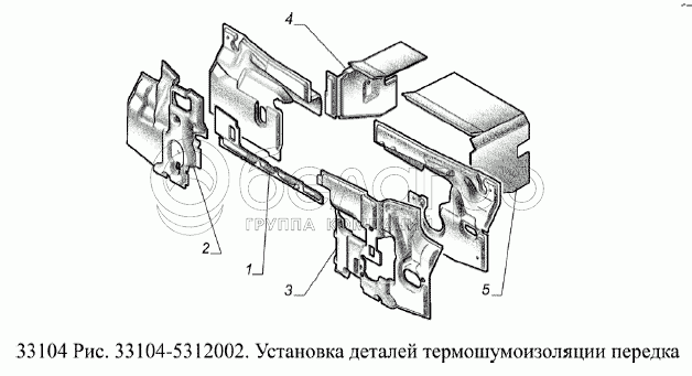 Каталог запасных частей к технике: ГАЗ-33104 Валдай Евро 3. Установка деталей термошумоизоляции передка