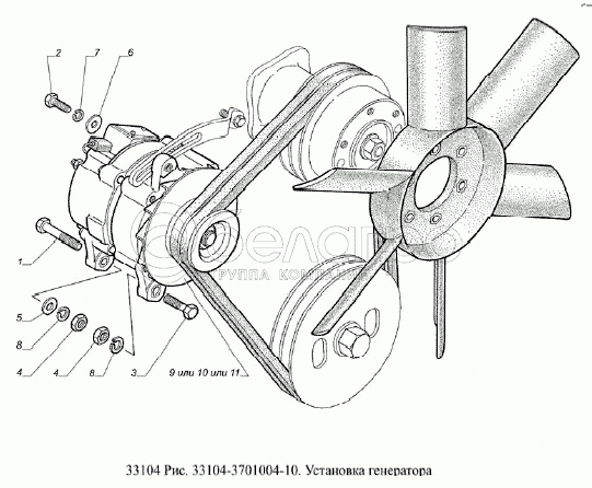 Каталог запасных частей к технике: ГАЗ-33104 Валдай Евро 3. Установка генератора