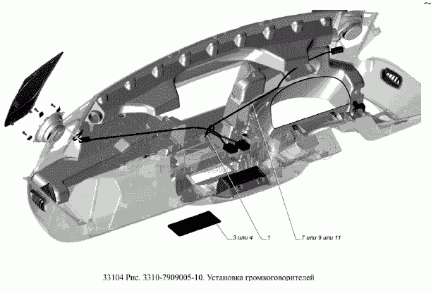 Каталог запасных частей к технике: ГАЗ-33104 Валдай Евро 3. Установка громкоговорителей