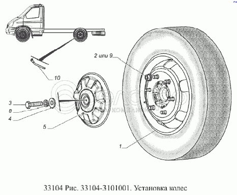Каталог запасных частей к технике: ГАЗ-33104 Валдай Евро 3. Установка колес