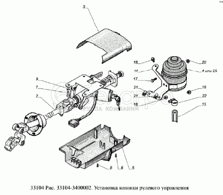 Каталог запасных частей к технике: ГАЗ-33104 Валдай Евро 3. Установка колонки рулевого управления