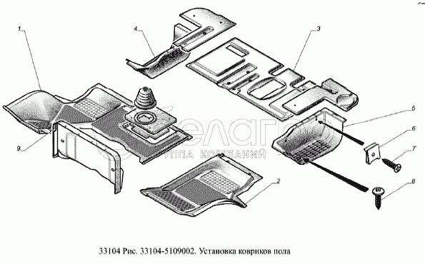 Каталог запасных частей к технике: ГАЗ-33104 Валдай Евро 3. Установка ковриков пола