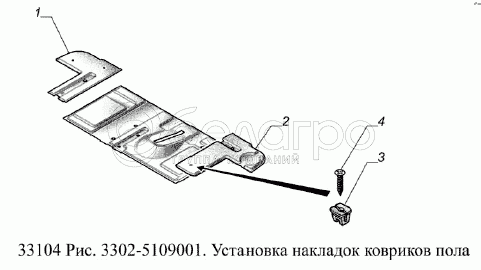 Каталог запасных частей к технике: ГАЗ-33104 Валдай Евро 3. Установка накладок ковриков пола