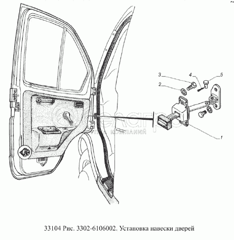 Каталог запасных частей к технике: ГАЗ-33104 Валдай Евро 3. Установка навески дверей