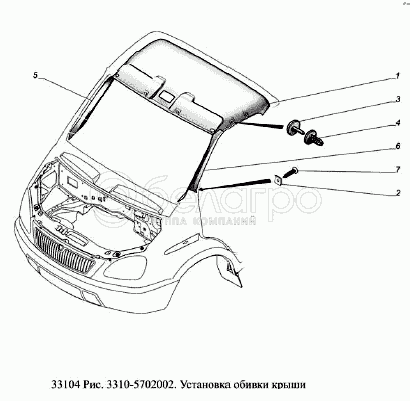 Каталог запасных частей к технике: ГАЗ-33104 Валдай Евро 3. Установка обивки крыши