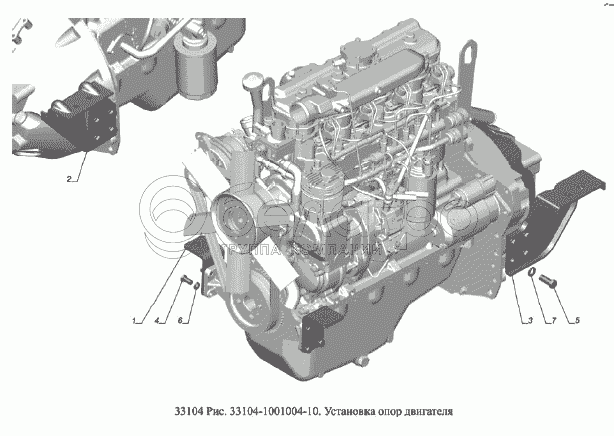Каталог запасных частей к технике: ГАЗ-33104 Валдай Евро 3. Установка опор двигателя