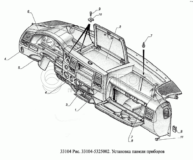 Каталог запасных частей к технике: ГАЗ-33104 Валдай Евро 3. Установка панели приборов
