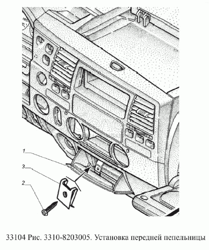 Каталог запасных частей к технике: ГАЗ-33104 Валдай Евро 3. Установка передней пепельницы