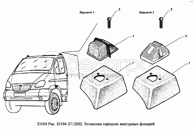 Каталог запасных частей к технике: ГАЗ-33104 Валдай Евро 3. Установка передних контурных фонарей