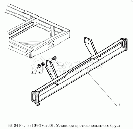 Каталог запасных частей к технике: ГАЗ-33104 Валдай Евро 3. Установка противоподкатного бруса